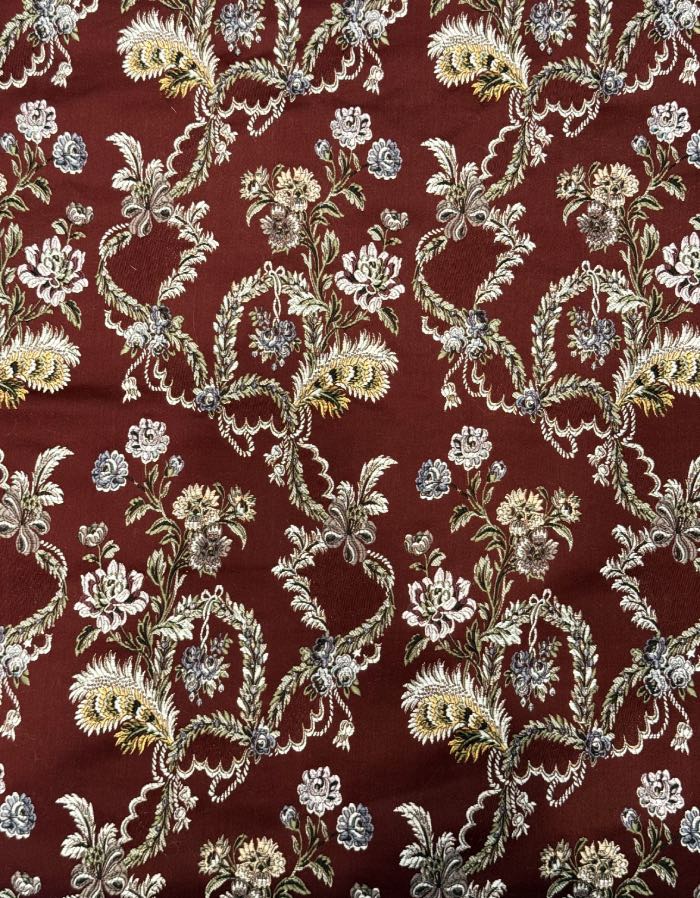 Corte de tela valenciana de 5,5 metros. Fondo de color berenjena y T54990.