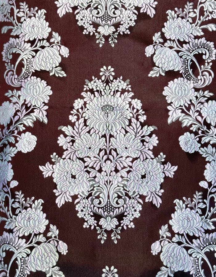 Corte de tela valenciana de 5,5 metros. Fondo de color berenjena y T36903.